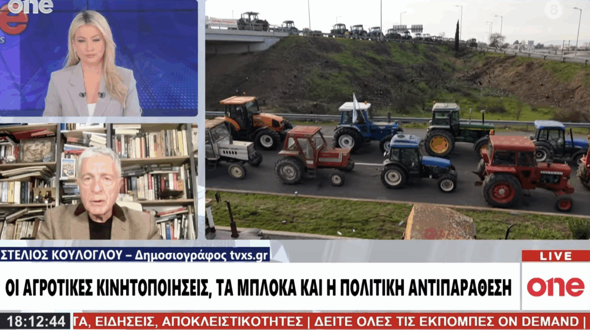 «Αν κλείσετε τα μάτια σας μια στιγμή θα δείτε τα τρακτέρ να κινούνται πάνω σε μία κοινωνική έρημο», σχολίασε ο Στέλιος Κούλογλου τις κινητοποιήσεις των αγροτών, στο Κεντρικό Δελτίο Ειδήσεων του One Channel με την Εβελίνα Κίσσα. Για τον Αλέξη Τσίπρα, ανέλυσε ότι το έργο του είναι πιο εύκολο από ότι παλιότερα. Ads «Γιατί η χώρα  πάει άσχημα, είναι σε μεγάλη κοινωνική και οικονομική κρίση. Ο Τσίπρας μπορεί αυτή τη στιγμή να ισχυριστεί ότι ήταν καλύτερα το 2019. Υπήρχε λιγότερη ακρίβεια, ο  κόσμος την έβγαζε δύσκολα, αλλά δεν είναι όπως τώρα  που 20 του μήνα σε πολλούς τελειώνουν  τα χρήματα.