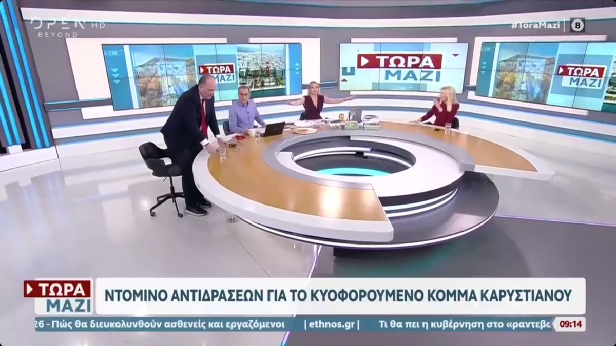 Υπενθυμίζεται πως πρόσφατα η υπουργός Κοινωνικής Συνοχής και Οικογένειας Δόμνα Μιχαηλίδου επιτέθηκε στην Μαρία Καρυστιανού, υποστηρίζοντας πως χρησιμοποιεί τον πόνο της ως πολιτικό βατήρα προσωπικής εξέλιξης. Ads Η ένταση και η αποχώρηση του βουλευτή μετά το 25:30