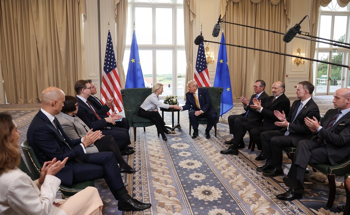 Ο Πρόεδρος των ΗΠΑ, Ντόναλντ Τραμπ ανακοίνωσε μετά τη συνάντηση με την Ούρσουλα φον ντερ Λάιεν ότι οι Ηνωμένες Πολιτείες κατέληξαν σε εμπορική συμφωνία με την Ευρωπαϊκή Ένωση.  Σύμφωνα με τη νέα συμφωνία θα επιβάλλονται δασμοί 15% σε όλα τα προϊόντα εκτός από τον χάλυβα και το αλουμίνιο, όπου θα ισχύουν οι δασμοί 50% που είχαν επιβληθεί τον Ιούνιο.