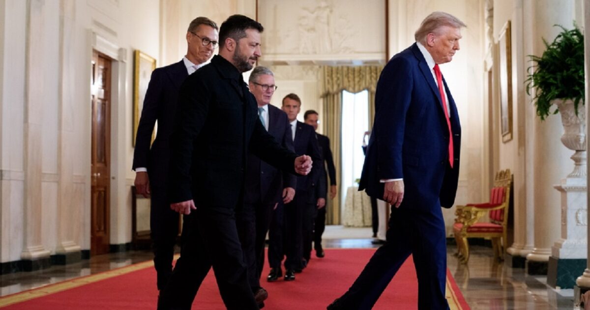 Ο Ντόναλντ Τραμπ, ο Βολοντίμιρ Ζελένσκι και οι Ευρωπαίοι ηγέτες / EPA/AARON SCHWARTZ / POOL
