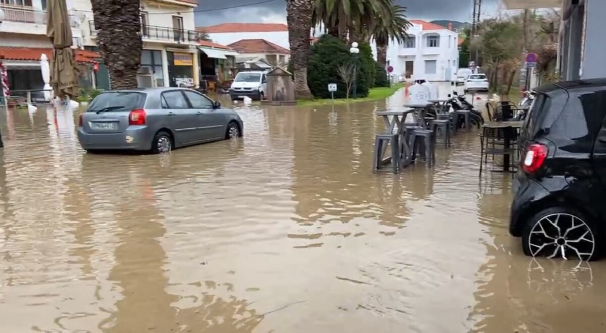 Στην αγορά της Μύρινας, την πλατεία ΚΤΕΛ και στους γύρω δρόμους, στα Καραμαλίδικα, αλλά και στη Λεωφόρο Δημοκρατίας, το νερό παρέσυρε χώματα, φερτά υλικά και ό,τι έβρισκε στο πέρασμά του.
