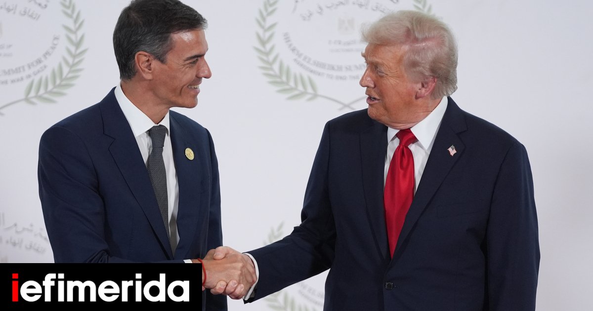 Ο Ισπανός πρωθυπουργός Πέδρο Σάντσεθ και ο πρόεδρος των ΗΠΑ, Ντόναλντ Τραμπ / Φωτογραφία: AP