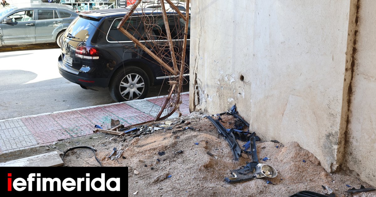 Το σημείο όπου σταμάτησε η ξέφρενη πορεία του μπλε αυτοκινήτου / Φωτογραφία: Intime