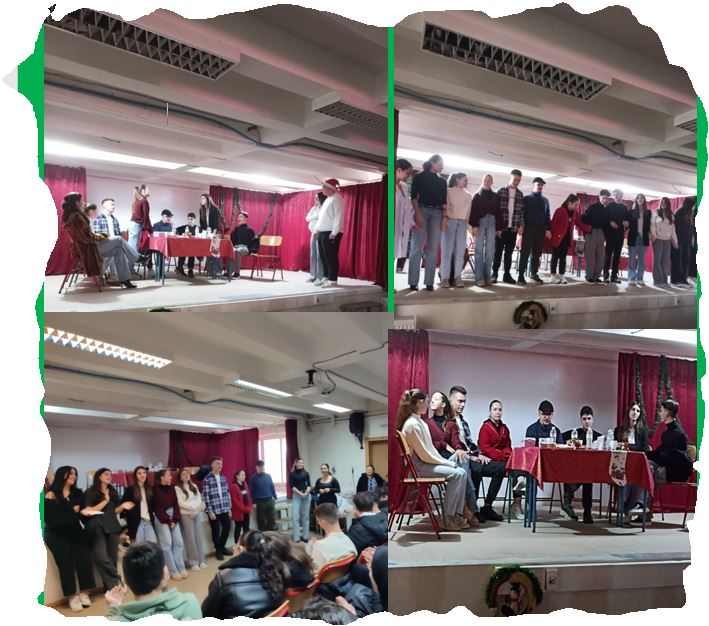 Με έναν δημιουργικό και ευφάνταστο τρόπο έκλεισε η τελευταία ημέρα μαθημάτων για το 2025 στο Λύκειο Σουφλίου. Οι μαθητές/τριες της Γ’ Λυκείου παρουσίασαν ένα σύντομο θεατρικό δρώμενο που εμπνεύστηκαν οι ίδιοι/ες και έγραψαν το σενάριο και τα κείμενα. Με σατυρικό τρόπο υποδύθηκαν τα μέλη μιας οικογένειας που βρίσκονται γύρω από το εορταστικό τραπέζι με όσα ευτράπελα μπορεί μια τέτοια μάζωξη να συνεπάγεται. Στο κλείσιμο της μικρής αυτής παράστασης, η οικογένεια, παρά τις επιμέρους διαφωνίες και ιδιαιτερότητες, ενώνεται με τη δύναμη της αγάπης μέσα από τον συμβολικό ερχομό ενός βρέφους- νέου μέλους της οικογένειας. «Τους ευχαριστούμε πολύ για τη φρεσκάδα της ματιάς τους και τη διάθεση να δημιουργούν και να στέλνουν το δικό τους μήνυμα με αυτό τον τρόπο, εν όψει των Αγίων Ημερών που ακολουθούν» αναφέρει η διεύθυνση του σχολείου.