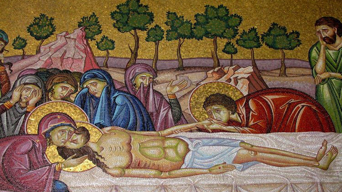 Ιωσήφ κηδεύει, συν τω Νικοδήμω, νεκροπρεπώς τον Κτίστην.
