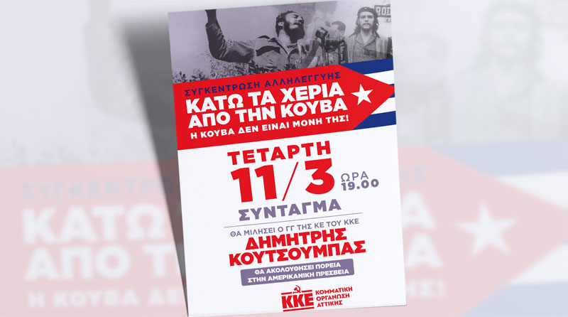 Μεγάλη συγκέντρωση διεθνιστικής αλληλεγγύης στην Κούβα και στον ηρωικό λαό της οργανώνει το ΚΚΕ την Τετάρτη 11 Μάρτη, στις 7 μ.μ. στο Σύνταγμα.