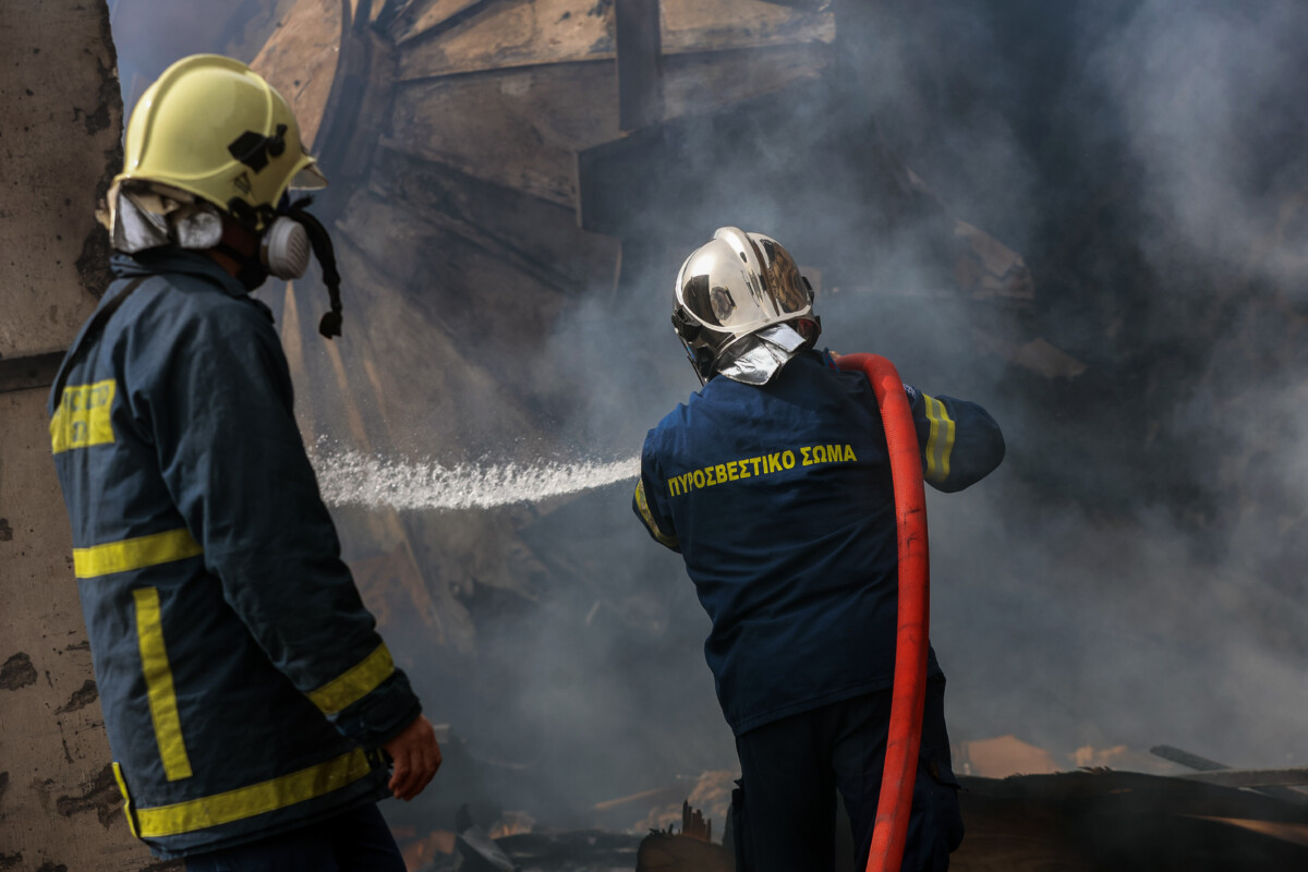 Το εργοστάσιο πλαστικών που βρίσκεται στη συμβολή των οδών Δεκελείας και Κατάρα καταστράφηκε ολοσχερώς.