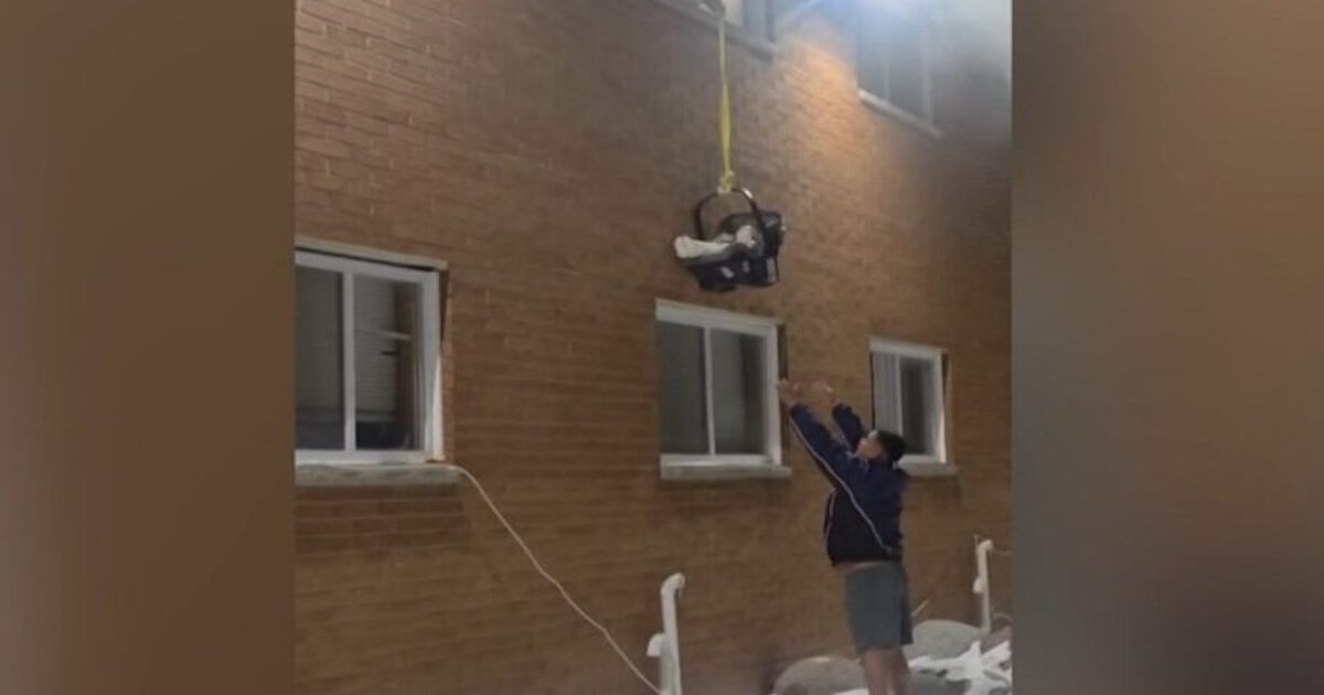 Το βρέφος, που βρισκόταν σε φορείο, κατέβηκε με ασφάλεια από το παράθυρο, καθώς καπνός έβγαινε από το διαμέρισμα στο οποίο εκδηλώθηκε φωτιά στο Μιλγουόκι.