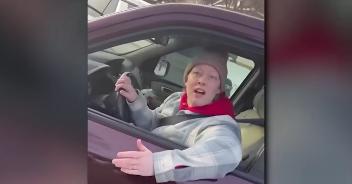 Στα πλάνα φαίνεται το SUV, μάρκας Honda Pilot της Γκουντ παρκαρισμένο στη μέση ενός δρόμου να εμποδίζει την κυκλοφορία.