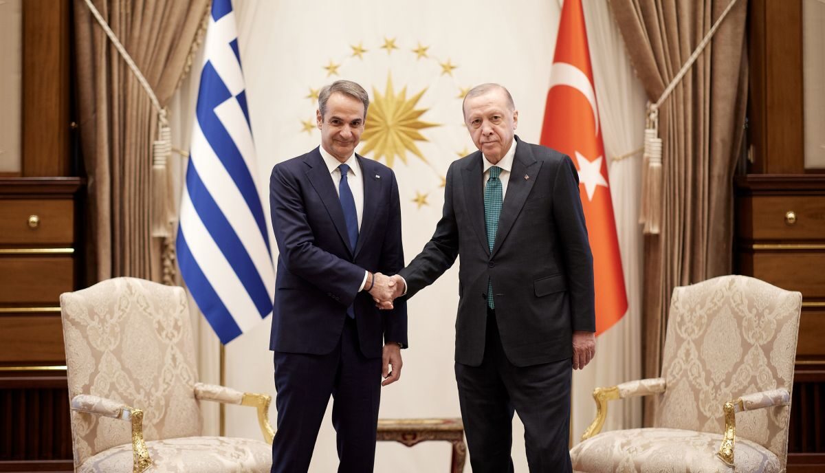 Στο Προεδρικό Μέγαρο της Άγκυρας πραγματοποιείται η συνάντηση του Έλληνα πρωθυπουργού Κυριάκου Μητσοτάκη με τον πρόεδρο της Τουρκίας Ρετζέπ Ταγίπ Ερντογάν, σε μια συγκυρία που επαναφέρει στο προσκήνιο τον ελληνοτουρκικό διάλογο. Ads Πρόκειται για το πρώτο τετ α τετ των δύο ηγετών έπειτα από περίπου ενάμιση χρόνο. Στην ατζέντα περιλαμβάνεται συνολική αποτίμηση των διμερών σχέσεων, καθώς και ανταλλαγή απόψεων για περιφερειακές και διεθνείς εξελίξεις.