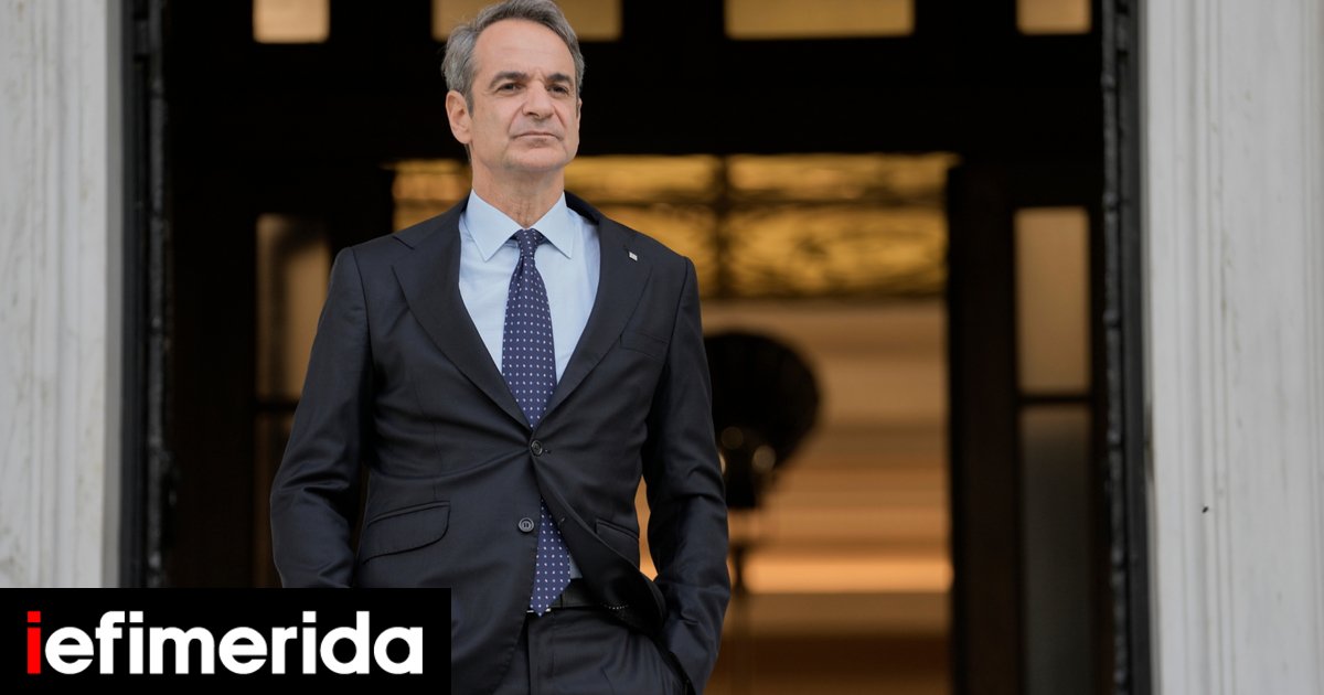 Ο Κυριάκος Μητσοτάκης στην είσοδο του μεγάρου Μαξίμου / Φωτογραφία: AP Photo/Petros Giannakouris