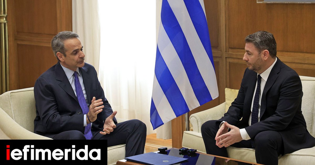 Η συνάντηση Μητσοτάκη-Ανδρουλάκη ξεκίνησε λίγο μετά τις 12:00 όταν ο πρόεδρος του ΠΑΣΟΚ Νίκος Ανδρουλάκης μετέβη στο γραφείο του πρωθυπουργού στη Βουλή.