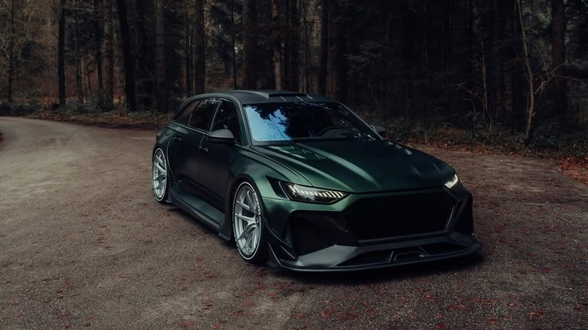 Το αποτέλεσμα ακούει στο όνομα Pangaea GT και κάνει το RS 6 Avant να δείχνει σαν να έχει βουτηχτεί σε ένα μαγικό ζωμό φτιαγμένο από στεροειδή. Το carbon body kit περιλαμβάνει νέο καπό με αεραγωγούς, ανασχεδιασμένο εμπρός προφυλακτήρα με ιδιαίτερα χαμηλό κάτω τμήμα, τροποποιημένη μάσκα, ογκώδη side skirts και αρκετά φαρδύτερα φτερά εμπρός και πίσω. Στο σύνολο προστίθεται και μια εισαγωγή οροφής, καθαρά για αισθητικούς λόγους, που ολοκληρώνει την ακραία εικόνα.