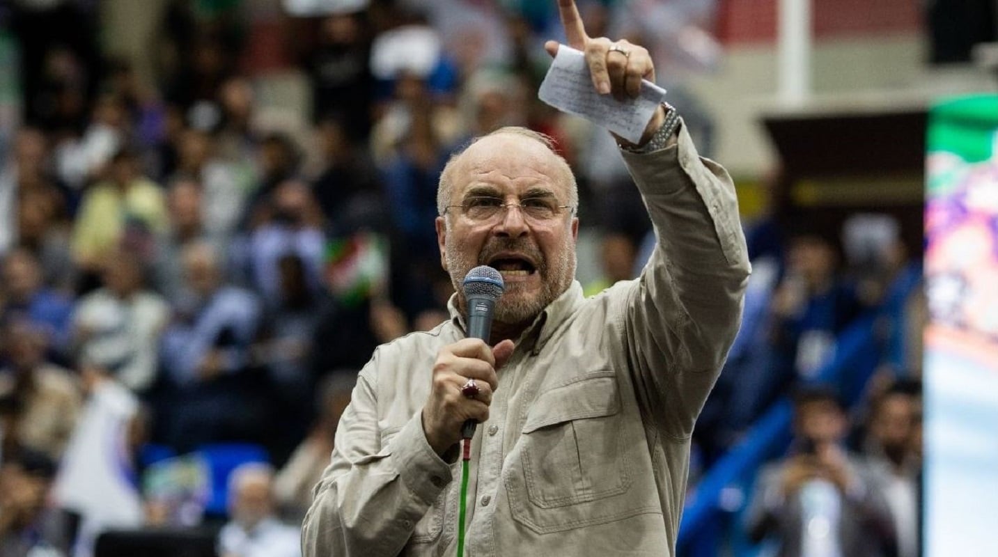Ο Μοχαμάντ Μπαγέρ Γκαλιμπάφ σε προεκλογική εκδήλωση στην Τεχεράνη, Ιράν, 26 Ιουνίου 2024. Ο πρόεδρος του ιρανικού κοινοβουλίου, ο Γκαλιμπάφ είναι επίσης πρώην στρατηγός των Φρουρών της Επανάστασης και ο επικεφαλής διαπραγματευτής με τις Ηνωμένες Πολιτείες στο Πακιστάν. (Άρας Χαμούσι / The New York Times)