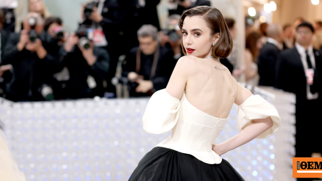 Η πρωταγωνίστρια της σειράς «Emily in Paris», Λίλι Κόλινς, φορά δημιουργία του σχεδιαστή Βασίλη Ζούλια