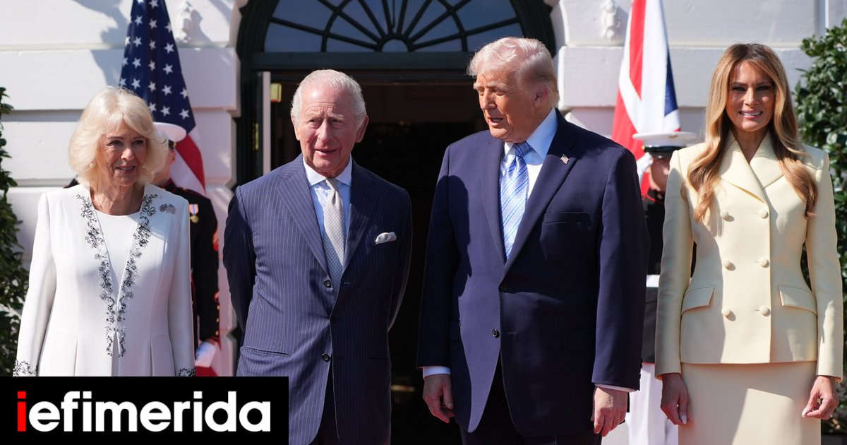 Στον Λευκό Οίκο για τη συνάντηση με τον Ντόναλντ Τραμπ και τη σύζυγό του, Μελάνια, βρέθηκαν τη Δευτέρα ο βασιλιάς Κάρολος και η βασίλισσα Καμίλα.
