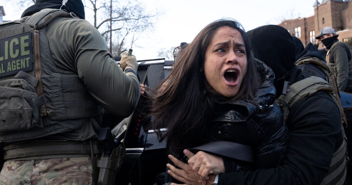 Βίντεο από τα επεισόδια αποτυπώνει την Αμερικανίδα Αλίγια Ραχμάν να τραβιέται με τη βία από το αυτοκίνητό της και από ομοσπονδιακούς πράκτορες μετανάστευσης, πριν εν τέλει συλληφθεί.
