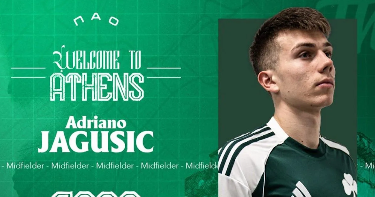 «Η ΠΑΕ Παναθηναϊκός ανακοινώνει την απόκτηση του Αντριάνο Γιάγκουσιτς από τη Σλάβεν Μπέλουπο της Κροατίας! Ο 20χρονος Κροάτης μεσοεπιθετικός υπέγραψε συμβόλαιο διάρκειας 4,5 ετών και αποτελεί την όγδοη χειμερινή μετεγγραφική προσθήκη στο ρόστερ. Ο Αντριάνο Γιάγκουσιτς γεννήθηκε στις 6 Σεπτεμβρίου 2005 στην Κοπρίβνιτσα της Κροατίας.