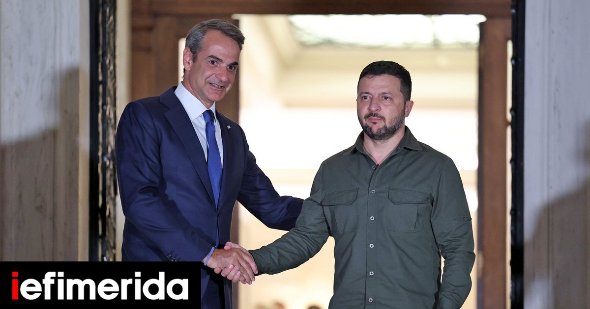 Ο Κυριάκος Μητσοτάκης με τον Βολοντίμιρ Ζελένσκι © ΓΙΩΡΓΟΣ ΚΟΝΤΑΡΙΝΗΣ / EUROKINISSI