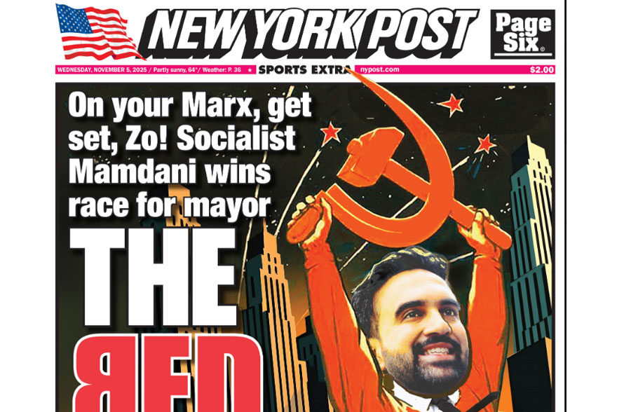 «On your Marx (λογοπαίγνιο με τον Καρλ Μαρξ on your marks σημαίνει στις θέσεις σας), get set, Zo (αντί για Go το μικρό όνομα του Μαμντάνι)! Ο Σοσιαλιστής Μαμντάνι κερδίζει την κούρσα για δήμαρχος» αναφέρει χαρακτηριστικά στον τίτλο της η υπερσυντηρητική εφημερίδα, χαρακτηρίζοντας πλέον τη Νέα Υόρκη από «Μεγάλο Μήλο» όπως αποκαλείται, σε… «Κόκκινο Μήλο».