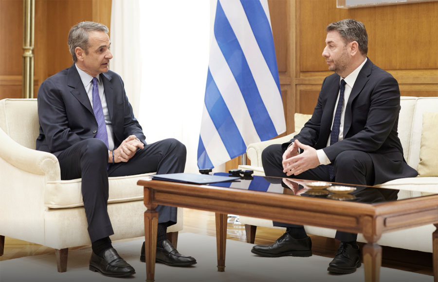 Ο Πρωθυπουργός Κυριάκος Μητσοτάκης συναντήθηκε στο γραφείο του στη Βουλή με τον Πρόεδρο του ΠΑΣΟΚ-ΚΙΝΑΛ Νίκο Ανδρουλάκη, προκειμένου να τον ενημερώσει, μετά από αίτημά του, γύρω από τις εξελίξεις στο Ιράν και στην περιοχή της Μέσης Ανατολής. Κατά την έναρξη της συνάντησης είχαν τον ακόλουθο διάλογο: