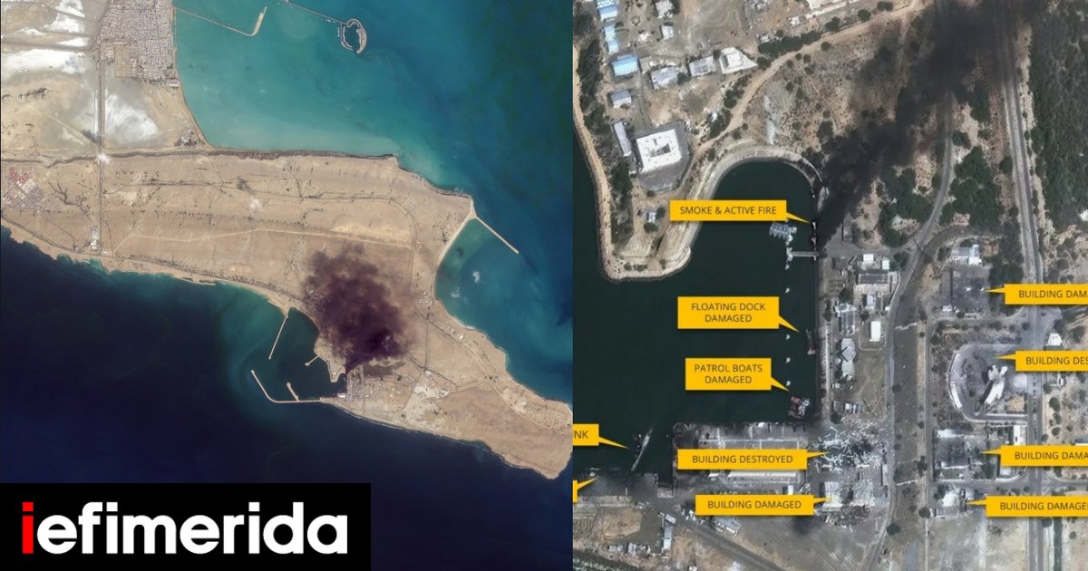 Η κλίμακα της καταστροφής αποτυπώνεται σε δορυφορικές φωτογραφίες που ήρθαν στο φως της δημοσιότητας, παρουσιάζοντας ένα εντυπωσιακό «πριν» και «μετά» στο στρατιωτικό λιμάνι του Μπαντάρ Αμπάς, στο Ιράν.