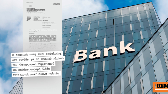 2/ «STOP στις αυθαίρετες χρεώσεις»: Από τα μέσα του μήνα έχει σταλεί κι άλλη επιστολή της Γραμματείας προς τις τράπεζες για τον έλεγχο και τερματισμό των χρεώσεων. Στο επίσημο αυτό έγγραφο (Α.Π.: 22096 ΕΞ 2026) το ΥΠΕΘΟ ξεκαθαρίζει στην Ελληνική Ενωση Τραπεζών ότι οι προμήθειες για αναλήψεις από ΑΤΜ πρέπει να τηρούνται αυστηρά βάσει του νόμου 5167/2024 βάζοντας φρένο στις «ευρηματικές» υπερχρεώσεις.