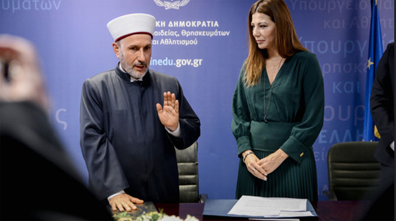 Πραγματοποιήθηκε σήμερα, Παρασκευή 9 Ιανουαρίου 2026, στο Υπουργείο Παιδείας, Θρησκευμάτων και Αθλητισμού, η τελετή ορκωμοσίας του νέου Μουφτή Διδυμοτείχου, κ. Εμίν Σερίφ, ενώπιον της Υπουργού Παιδείας, Θρησκευμάτων και Αθλητισμού, Σοφίας Ζαχαράκη. Η επιλογή και η ορκωμοσία του νέου Μουφτή, σηματοδοτεί την για πρώτη φορά ολοκληρωμένη εφαρμογή του σύγχρονου θεσμικού πλαισίου για τον θεσμό της Μουφτείας σύμφωνα με νόμο 4964/2022 (Α’ 150).