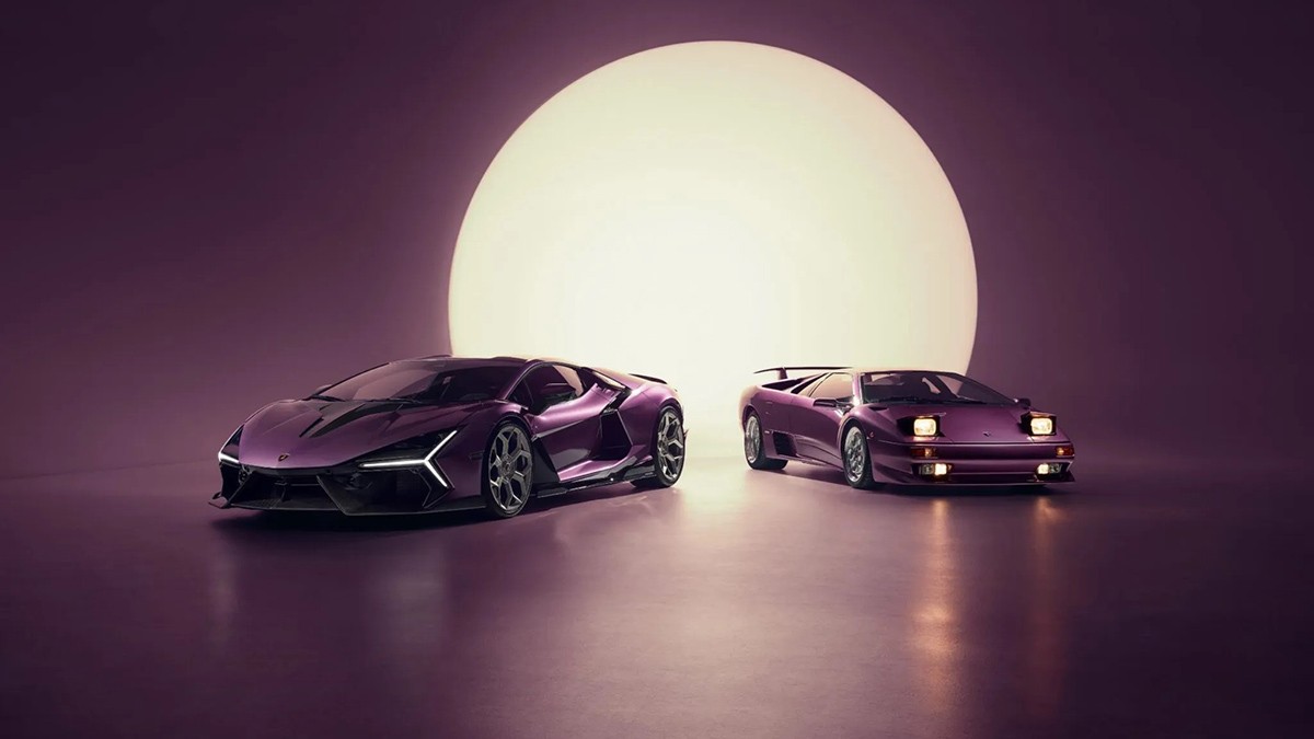 Η βαθιά μωβ απόχρωση της συγκεκριμένης Revuelto παραπέμπει άμεσα στην εμβληματική Lamborghini Diablo SE30 που πρωταγωνιστούσε στο video του 1996, δημιουργώντας μια γέφυρα ανάμεσα στο παρελθόν και το σήμερα.