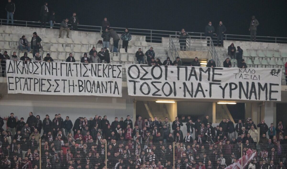 Στο Πανθεσσαλικό, όπου η ΑΕΛ αντιμετώπισε τον ΝΠΣ Βόλος, οι «βυσσινί» είχαν έντονη παρουσία και δημιούργησαν ατμόσφαιρα που θύμιζε έδρα, όμως το πιο ηχηρό στιγμιότυπο της βραδιάς δεν ήρθε από το παιχνίδι. Ads Οι φίλαθλοι της ΑΕΛ επέλεξαν να στρέψουν τα βλέμματα στις τραγωδίες των τελευταίων ημερών, υψώνοντας δύο πανό που έφεραν μηνύματα μνήμης και συμπαράστασης, όπως ανέφερε το τοπικός ενημερωτικός ιστότοπος onlarissa.