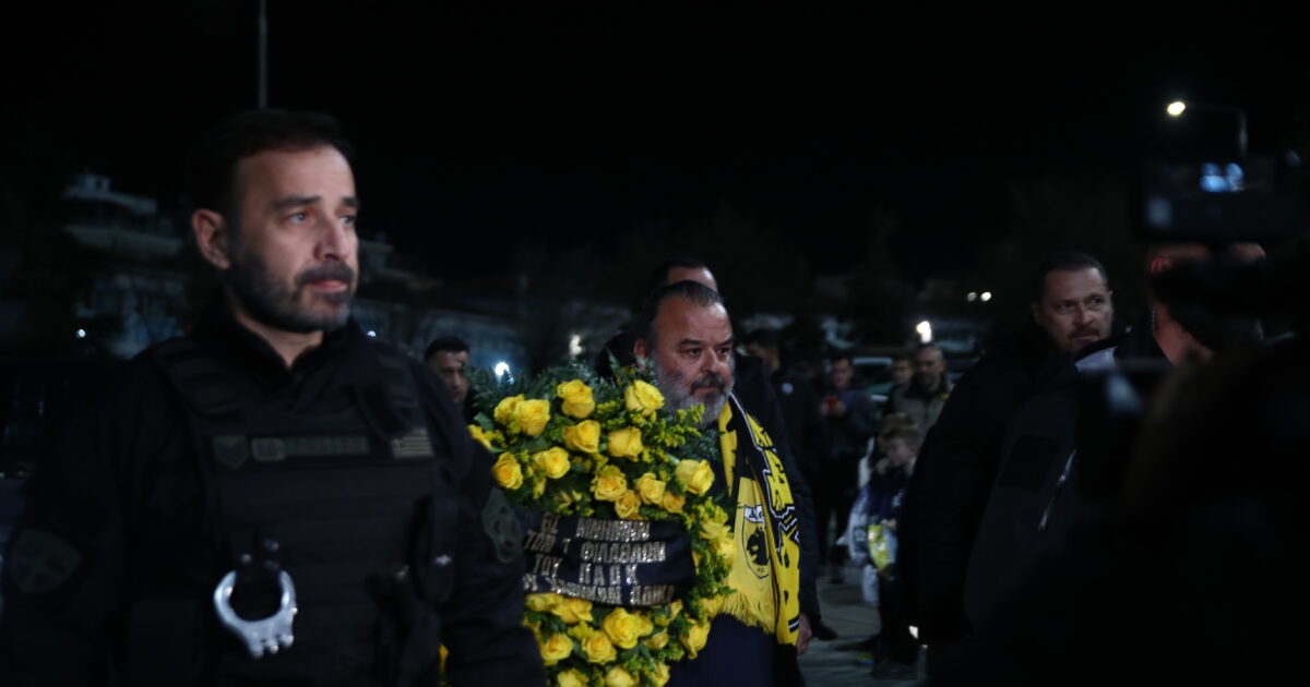 Ο Μάριος Ηλιόπουλος ταξίδεψε στη Θεσσαλονίκη για να δει από κοντά το ντέρμπι του ΠΑΟΚ με την ΑΕΚ και πριν την είσοδό του στις εξέδρες της Τούμπας κατέθεσε στεφάνι για τους αδικοχαμένους οπαδούς του Δικεφάλου.