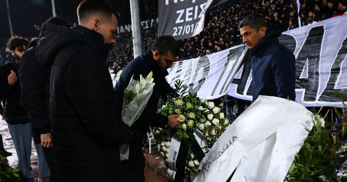 Η Τούμπα… δάκρυσε, με τους συνδέσμους του ΠΑΟΚ να γεμίζουν με εκατοντάδες στεφάνια το σημείο μπροστά από τη Θύρα 4, για να ακολουθήσουν αμέσως μετά ο Ραζβάν Λουτσέσκου, οι ποδοσφαιριστές του “δικεφάλου” αλλά και αυτοί του Πανσερραϊκού, αφήνοντας ανθοδέσμες.