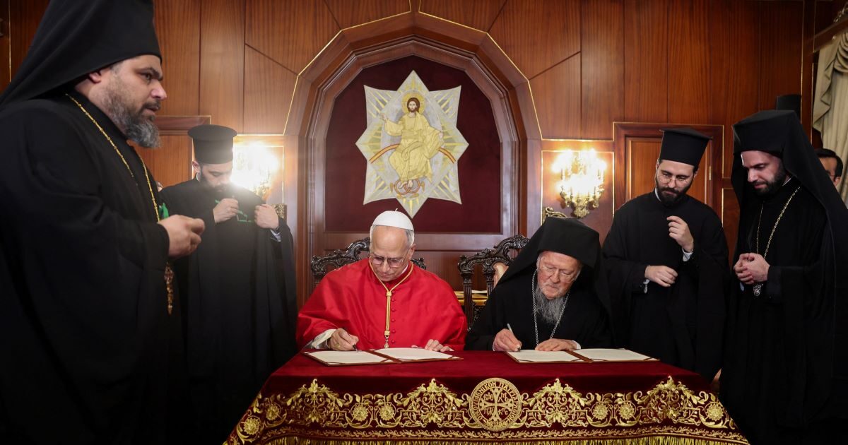 «Σας υποδεχόμαστε με χαρά και αγαλλίαση», είπε ο Πατριάρχης Βαρθολομαίος απευθυνόμενος στον Πάπα Λέοντα και έκανε εκτενή αναφορά στην σύμπνοια που υπήρχε με τον προκάτοχό του, Πάπα Φραγκίσκο.