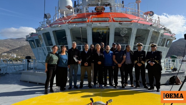 Ο κ. Παπασταύρου, με τον Γενικό Γραμματέα του Υπουργείου Ναυτιλίας και Νησιωτικής Πολιτικής κ. Βαγγέλη Κυριαζόπουλο, τον Δήμαρχο Αμοργού κ. Λευτέρη Καραΐσκο, τον Πρόεδρο κ. Μιχάλη Κρόσμαν και μέλη του ΔΣ του Επαγγελματικού Συλλόγου Αλιέων «Παναγία Χοζοβιώτισσα», μετέβησαν στο υπερσύγχρονο σκάφος της Ευρωπαϊκής Υπηρεσίας Ελέγχου της Αλιείας (EFCA) Ocean Sentinel, το οποίο κατέπλευσε χθες στην Αμοργό. Σε συνεργασία με τις αρμόδιες ελληνικές Αρχές, θα συμβάλλει στην επιτήρηση των Περιοχών Περιορισμού Αλιείας του νησιού. Πάνω στο σκάφος ο Υπουργός ενημερώθηκε από την Εκτελεστική Διευθύντρια του EFCA, Dr. Susan Steele, τόσο για το έργο της Υπηρεσίας, όσο και για τις δυνατότητες του Ocean Sentinel, το οποίο μόνο πέρυσι πραγματοποίησε 4.500 επιθεωρήσεις, εκπαιδεύοντας τους επαγγελματίες εντός του σκάφους.
