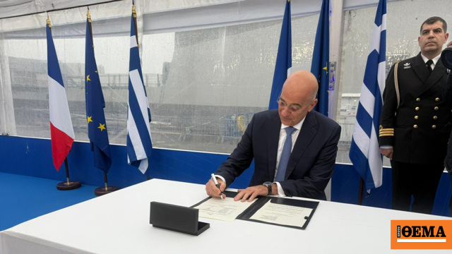 Η στιγμή της υπογραφής από τον κ. Δένδια