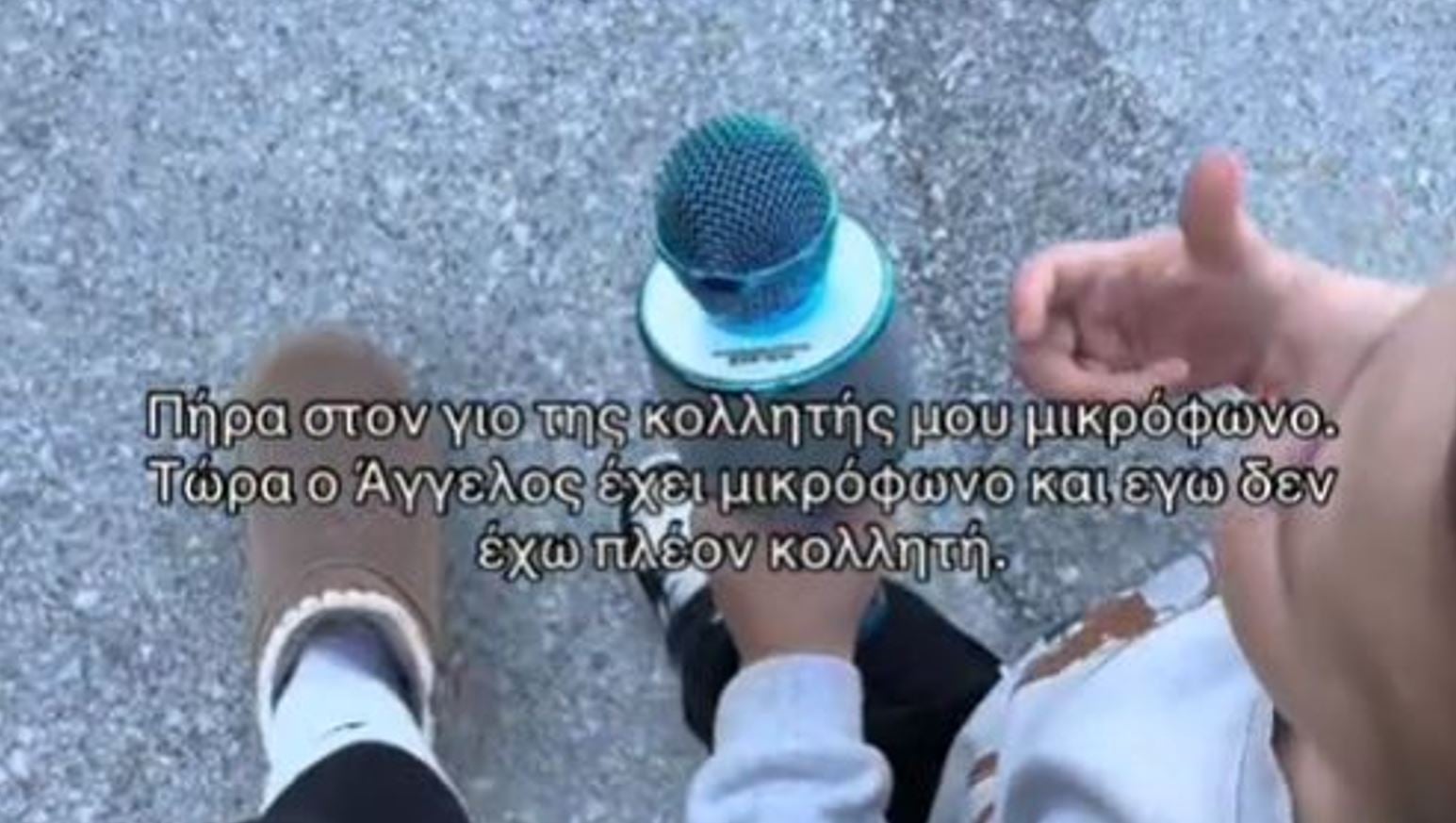 Στο βίντεο, η θεία και κολλητή γράφει: «Τώρα αρχίζει το καλό. Πήρα στον γιο της κολλητής μου μικρόφωνο. Τώρα ο Άγγελος έχει μικρόφωνο και εγώ δεν έχω πλέον κολλητή».