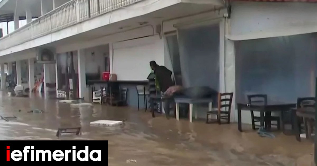 Στον Αγιόκαμπο ιδιαίτερα έχουν πλημμυρίσει δρόμοι και σπίτια, με τη θάλασσα να έχει γίνει «ένα» με τον δρόμο.