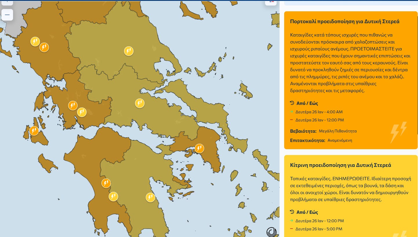 Η κίτρινη προειδοποίηση ισχύει από Δευτέρα 26 Ιαν – 12:00 PM Δευτέρα 26 Ιαν – 5:00 PM