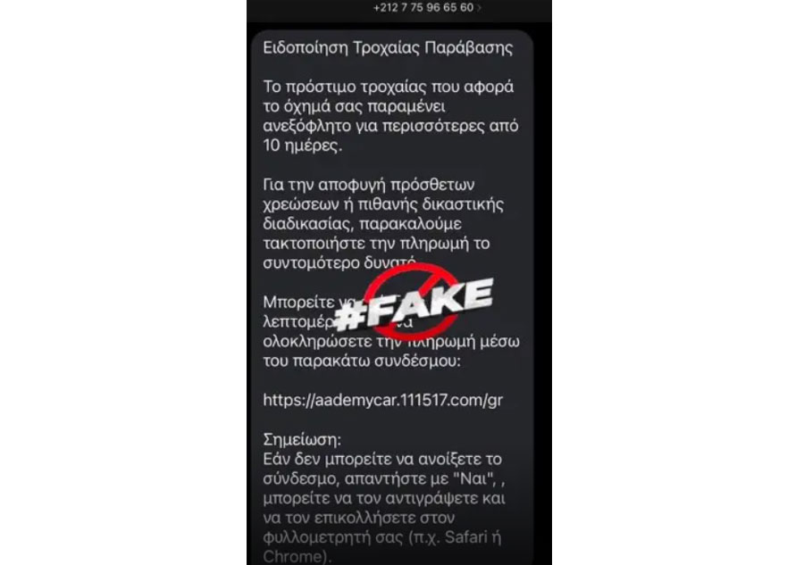 Σε συνέχεια της από 3 Φεβρουαρίου 2026 ανακοίνωσης, με την οποία είχαν ενημερωθεί οι πολίτες για αποστολή απατηλών μηνυμάτων (SMS) σχετικά με δήθεν επιβολή προστίμων τροχαίων παραβάσεων, επισημαίνεται ότι οι επιτήδειοι επανέρχονται με νέα παραλλαγή της ίδιας μεθόδου εξαπάτησης.