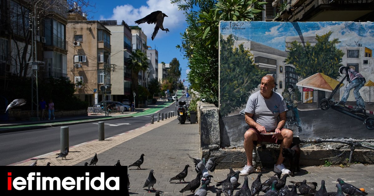 Άνδρας στο Τελ-Αβίβ του Ισραήλ ταΐζει πουλιά την επομένη της συμφωνίας για εκεχειρία με το Ιράν / Oded Balilty, AP