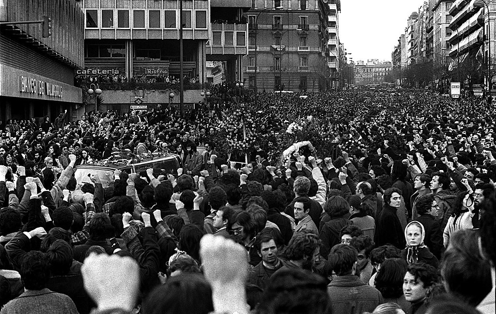 Στις 24 Γενάρη του 1977 στον σιδηροδρομικό σταθμό Ατότσα της Μαδρίτης, οι εκπρόσωποι των Εργατικών Επιτροπών (Comisiones Obreras – CCOO), συνδικαλιστές και μέλη του ακόμα παράνομου τότε Κομμουνιστικού Κόμματος Ισπανίας έχουν συγκεντρωθεί για να συζητήσουν, παρουσία εργατολόγων, με επικεφαλής τον Χοακίν Ναβάρο, για τα εργατικά δικαιώματα στο συνδικάτο μεταφορών, ανεξαρτητοποιούμενοι/ες από το επίσημο φρανκικών αναφορών Sindicato Vertical του κλάδου.
