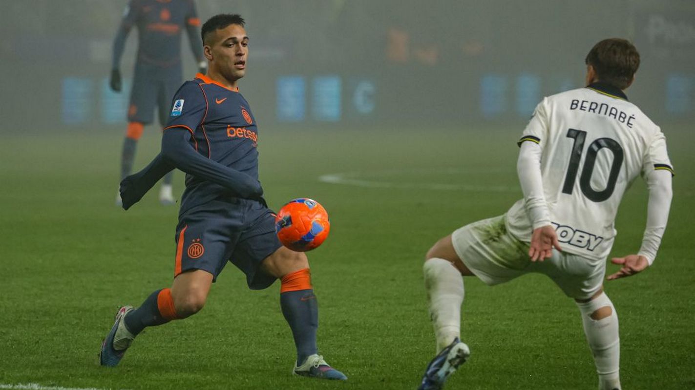 epa12634958 Inters Lautaro Martinez (L) fights for the ball against Parmas Adrian Bernabe (R) during the Italian Serie A soccer match between Parma Calcio 1913 and FC Internazionale Milano in Parma, Italy, 07 January 2026. EPA/Lorenzo Cattani