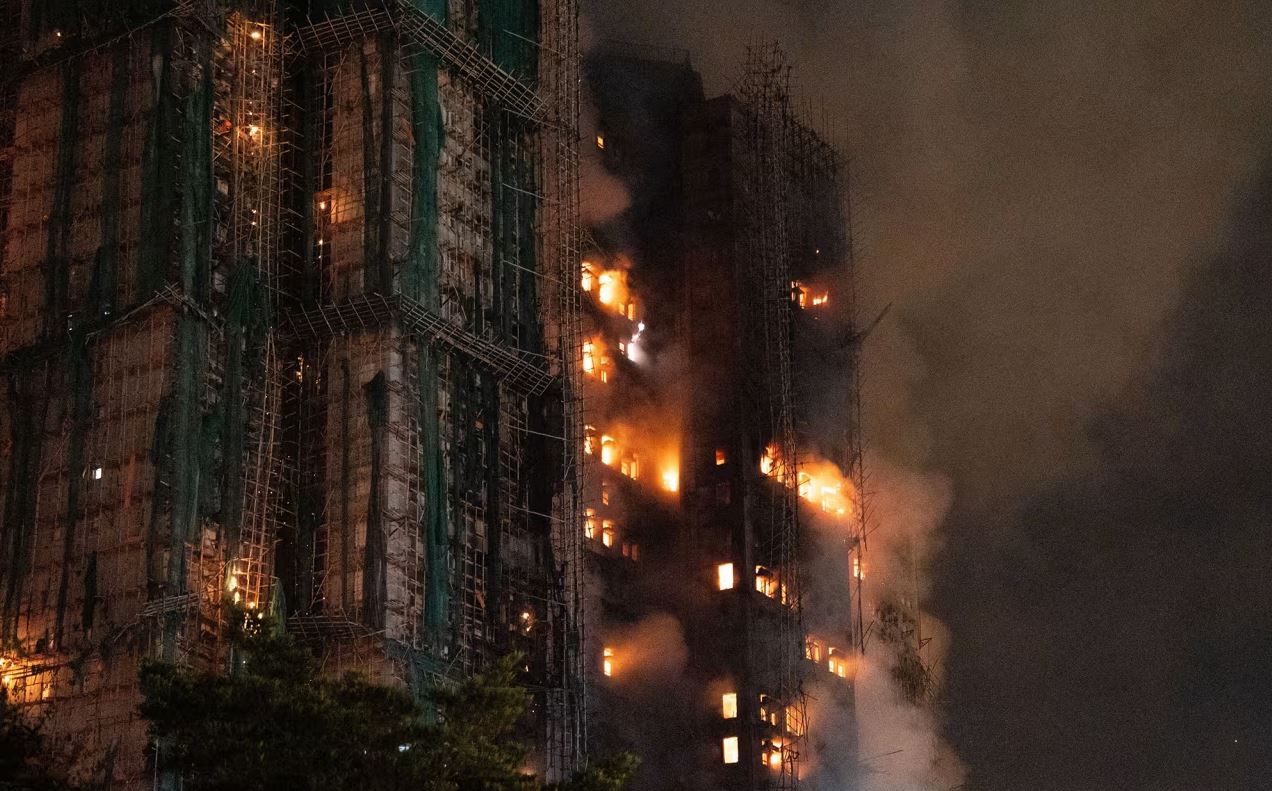 Οι πυροσβέστες εξακολουθούν να εργάζονται για την κατάσβεση της φωτιάς στο Wang Fuk Court, το συγκρότημα με τους ουρανοξύστες.  Δεκάδες διαμερίσματα εξακολουθούν να καίγονται, με εντυπωσιακές εικόνες που δείχνουν τις ομάδες έκτακτης ανάγκης να συνεχίζουν το έργο τους στο σκοτάδι.