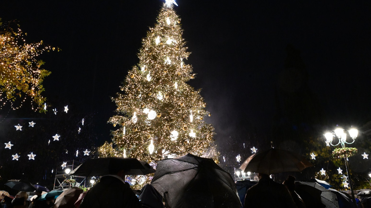 Σε εορταστικό κλίμα μπήκαν απόψε οι Αθηναίοι. Παρά τη βροχόπτωση, ο δήμαρχος Χάρης Δούκας άναψε το χριστουγεννιάτικο δέντρο στην πλατεία Συντάγματος, ενώ μουσικό πρόγραμμα έβαλε στο πνεύμα των Χριστουγέννων τον κόσμο, που δεν πτοήθηκε από τη βροχή και παρέμεινε με τις ομπρέλες του στο Σύνταγμα.