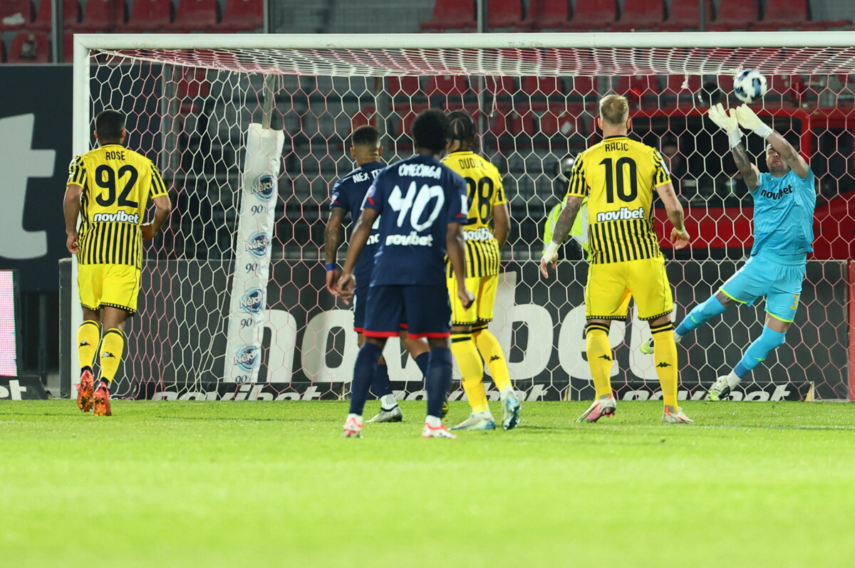 Φοβερή στιγμή στις καθυστερήσεις (90+3′) είχε ο Άρης για να κλέψει το σπουδαίο διπλό. Ο Γιαννιώτας εξαπέλυσε έναν κεραυνό με το αριστερό, με την μπάλα να παίρνει περίεργη τροχιά και να καταλήγει στο οριζόντιο δοκάρι του Τιναλίνι.