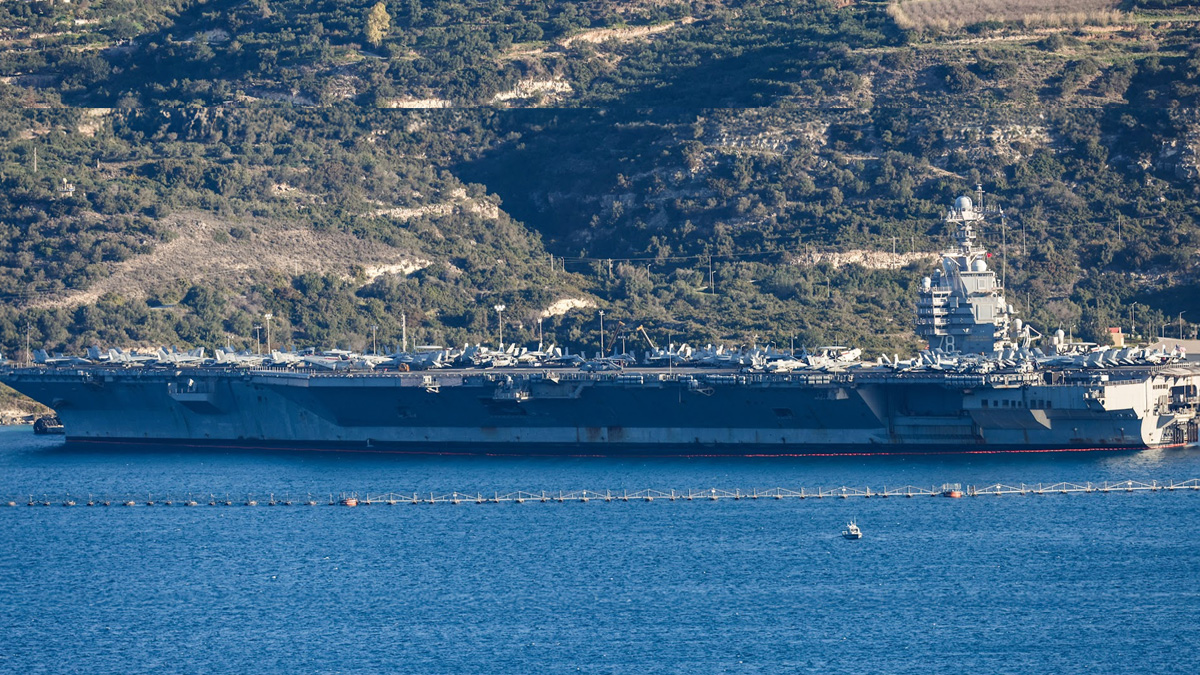 Επίσης στη βάση βρίσκεται το εμβληματικό αεροπλανοφόρο Gerald Ford, που συνοδεύεται από το αντιτορπιλικό «USS Mahan», ενώ οι κινήσεις του παρακολουθούνται σε πραγματικό χρόνο, καθώς διατηρεί ενεργό το σύστημα γεωεντοπισμού AIS.