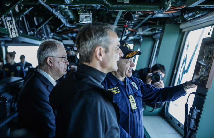 Ο Πρόεδρος της Δημοκρατίας Κωνσταντίνος Αν. Τασούλας παρέστη στην εν πλω τελετή υποδοχής της φρεγάτας «ΚΙΜΩΝ», παρουσία του Πρωθυπουργού Κυριάκου Μητσοτάκη, του Υπουργού Εθνικής Άμυνας Νίκου Δένδια και του Υφυπουργού Εθνικής Άμυνας Θανάση Δαβάκη.