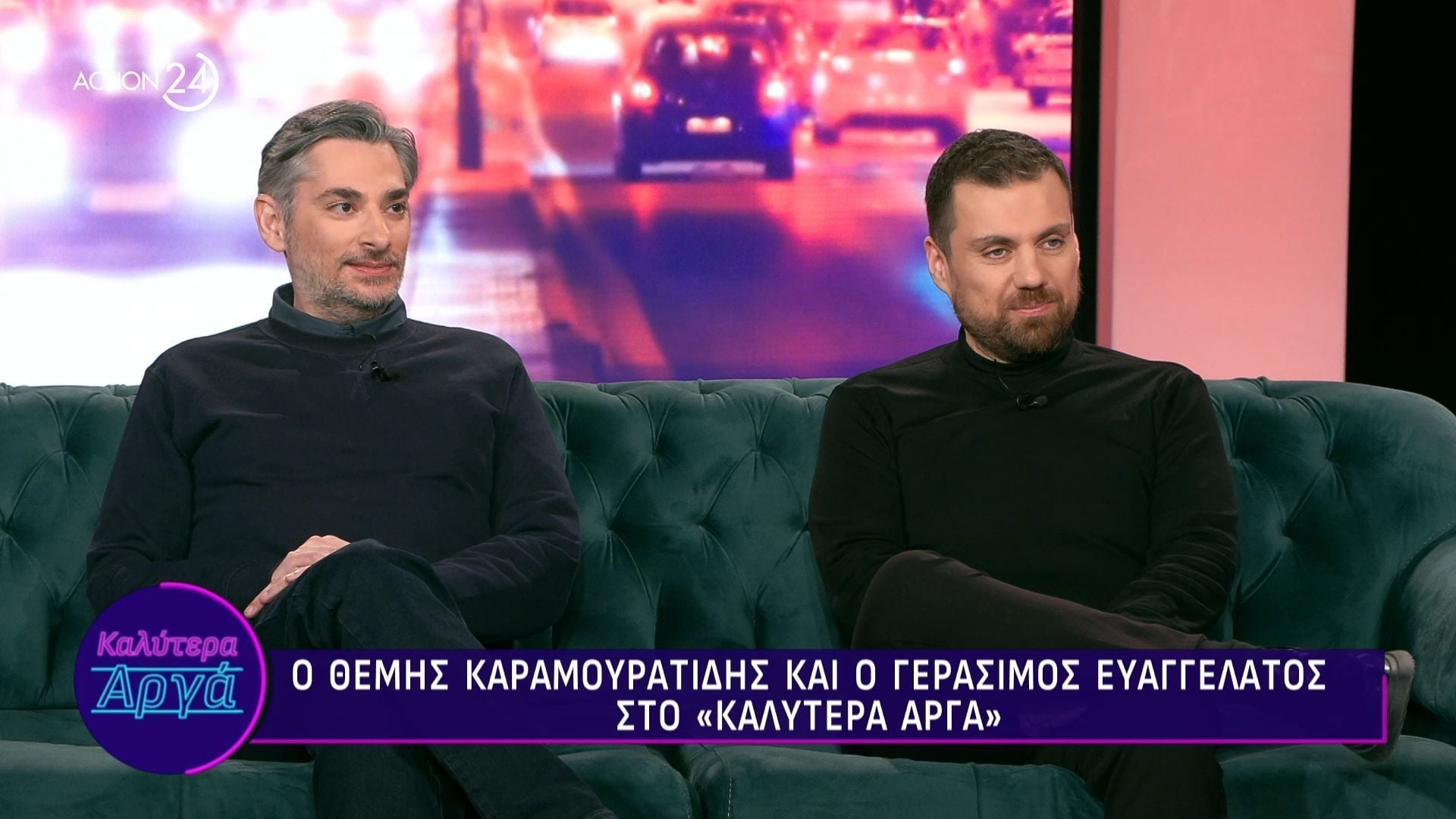 Οι δημιουργοί Θέμης Καραμουρατίδης και Γεράσιμος Ευαγγελάτος βρέθηκαν καλεσμένοι στην εκπομπή «Καλύτερα Αργά» με την Αθηναΐδα Νέγκα, στο Action 24, και μίλησαν για τη σχέση που έχουν αναπτύξει μέσα από τη μακρόχρονη καλλιτεχνική τους συνεργασία.