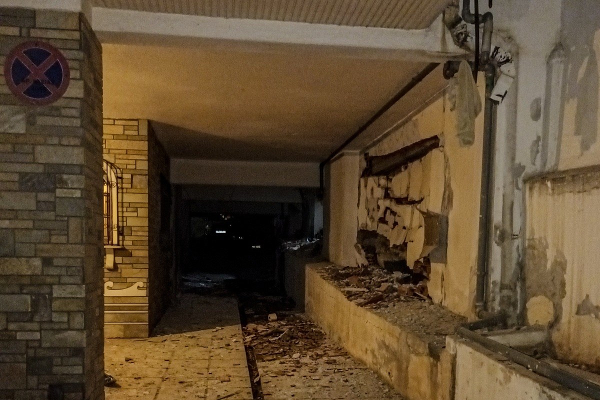 Σπασμένα τζάμια, μάρμαρα, πλακάκια, ξύλα, πεσμένα στο έδαφος, με τις ζημιές να επεκτείνονται σε διαμερίσματα γύρω από την πολυκατοικία, επαγγελματικούς χώρους και αυτοκίνητα.