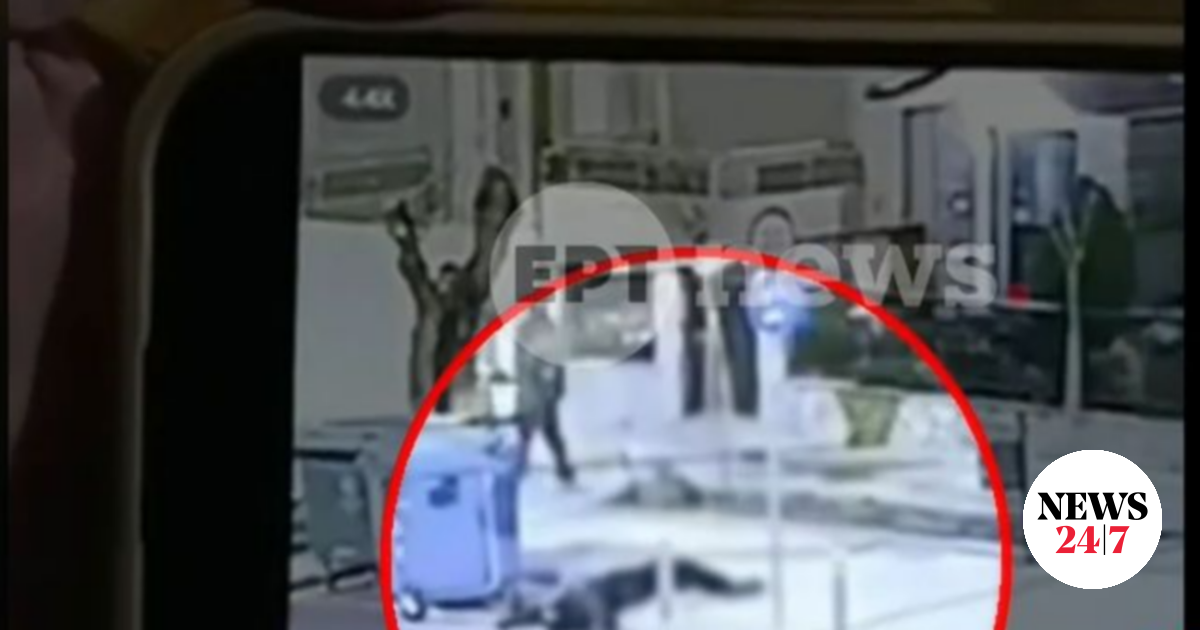 Στο βίντεο ντοκουμέντο που μεταδίδει η ΕΡΤ, φαίνεται ο 20χρονος να τρέχει και στη συνέχεια να καταρρέει τραυματισμένος δίπλα σε ένα κάδο.